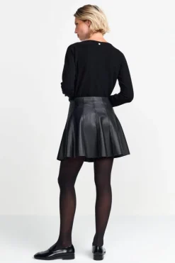 Dieser High-Waist-Minirock in Lederoptik wird durch seinen ausgestellten Schnitt und die eleganten Falten zum It-Piece für den Herbst! Die vorteilhafte Silhouette kreiert einen femininen Look, den Du perfekt mit Loafern oder Boots ergänzen kannst.