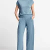 Diese weite Stoffhose in Hellblau mit Crinkle-Optik verkörpert sommerliche Leichtigkeit! Der elastische Bund bietet einen bequemen Tragekomfort und wir kombinieren sie am liebsten mit dem passenden Top für einen harmonischen Monochrom-Look.