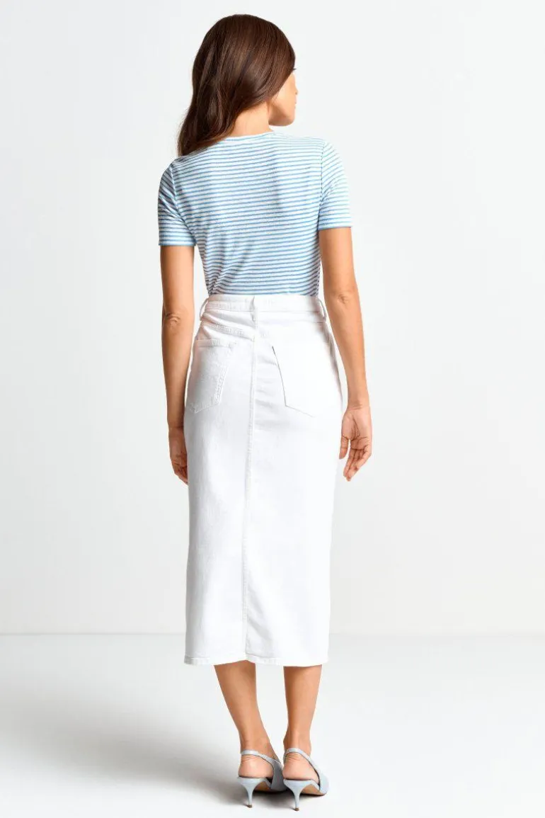 Dieses stilvolle T-Shirt verleiht Deinen Outfits dank Streifenmuster und metallischen Details einen Hauch von Glamour! Es ist ein sommerliches Must-have in Deiner Garderobe, das sowohl alltagstauglich als auch extravagant ist.